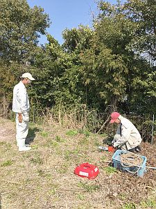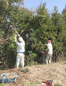 さて、島の仕事の後継者にもジャム屋が成ろうとしています。下の写真は防風林の剪定指導を元の農家さんからいただいているところ。畑だけの管理から山全体の管理に。地域の担い手になるにはまだまだ学ぶことが沢山あります。頑張れ、未来の巨匠!