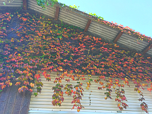 そして、観ているだけで芸術だと感じるモノ。秋はやはり紅葉ですよね。下の写真はブルーベリーの紅葉。春先の可愛い白い花、夏の美味しい果実、秋の見ごたえある紅葉。ブルーベリーの樹は1本で3度楽しめる、贅沢な果樹です。そのもう一つ下の写真は、ある農家さんのミカン倉庫。ツタが紅葉し、いい味を出していました。