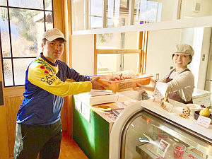 そんな苺ハウスで完熟の苺を朝収穫するのも農業系インターンシップの学生さんと。新鮮な完熟苺が工房に届き、即ジャムやスイーツ類に使われていきます。この新鮮さも美味しさの秘訣です。